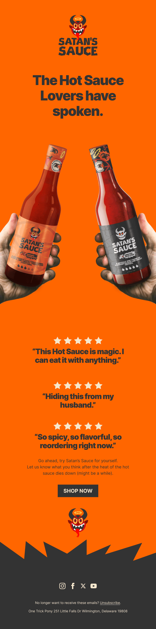 Satan's Sauce is a bold, irreverent hot sauce brand that thrives on intensity—both in flavor and personality. The brand celebrates fiery extremes, tempting thrill-seekers, spice addicts, and heat-loving rebels to embrace a taste that’s as dangerous as it is delicious. Its aesthetic blends cartoonish mischief with infernal heat: exaggerated facial expressions, bright color palettes, and inferno-inspired typography.