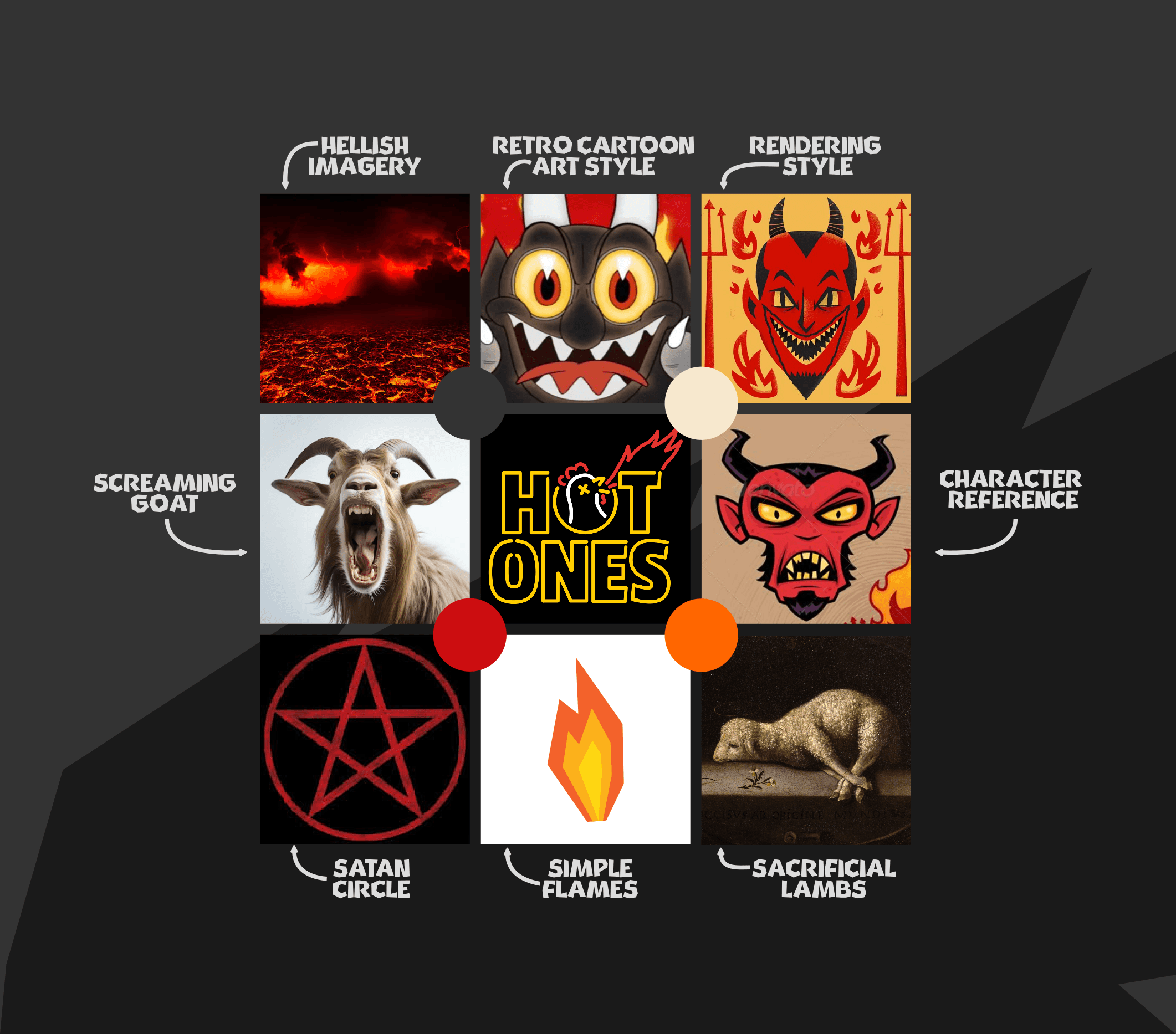 The initial sketches and moodboard played a crucial role in shaping the visual direction of Satan’s Sauce.